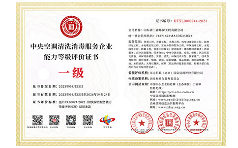 中央空調(diào)清洗消毒服務(wù)企業(yè)能力等級評價證書