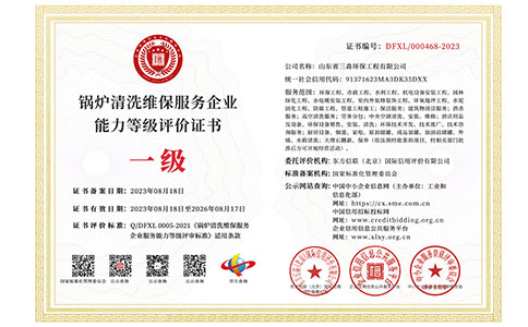 鍋爐清洗維保服務(wù)企業(yè)能力等級評價證書